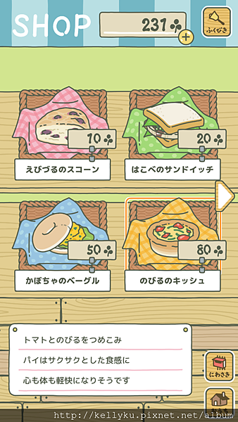 (紅-胡蘿蔔-易碰到小老鼠、橘-南瓜-易碰到螃蟹、綠-毛豆-易碰到蝴蝶、白-牛奶-碰到對象隨機、灰-牛蒡-遇到對象隨機)
