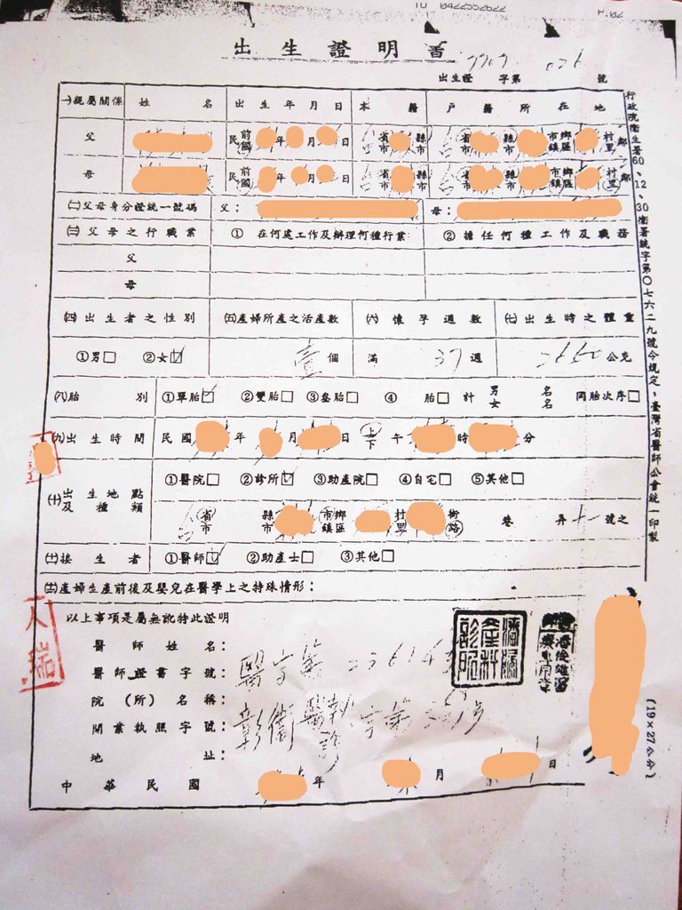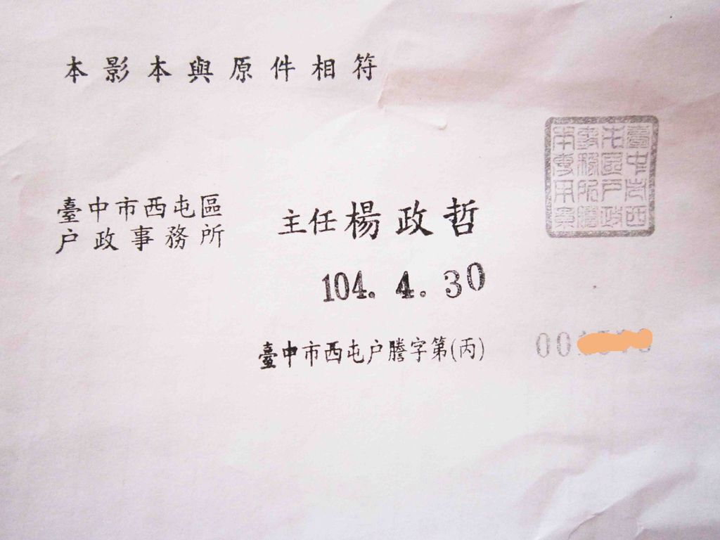5.從戶政事務所申請來的中文版(或病院申請或你有正本)