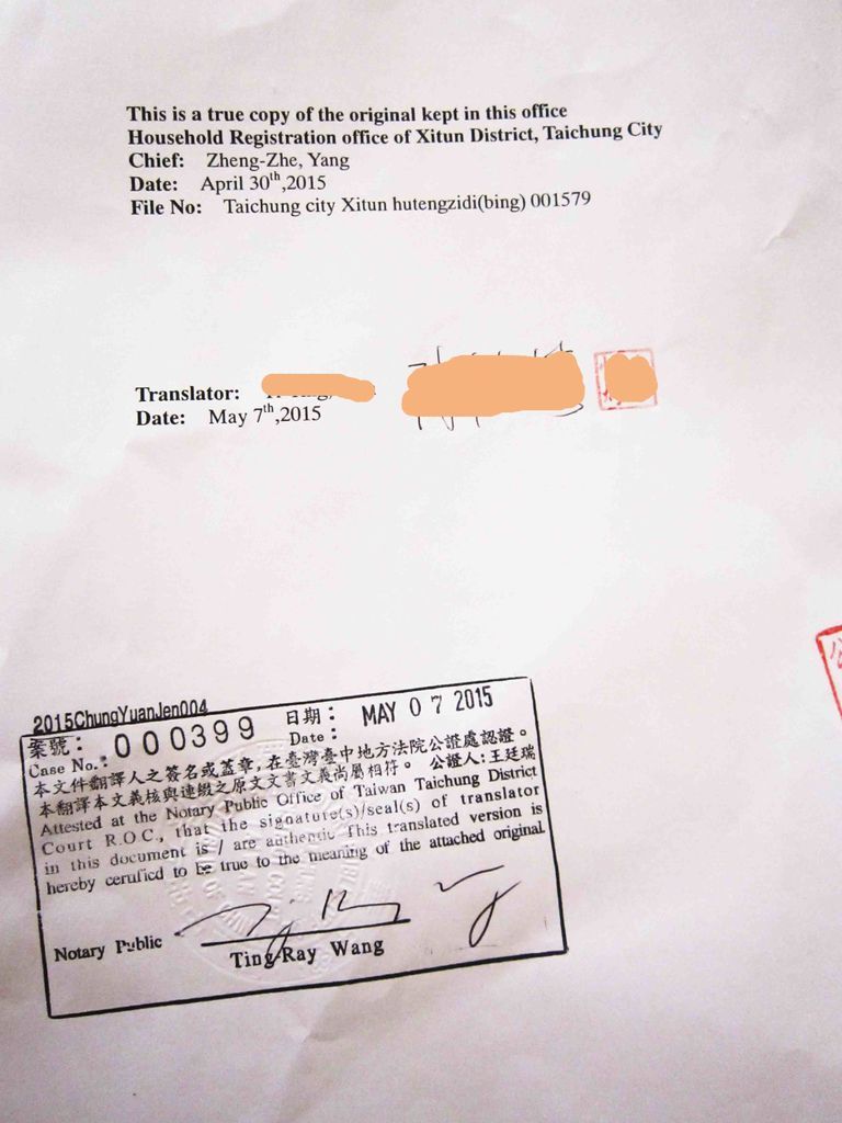 接著翻完後,就到你所在縣市的地方法院公證,舉台中例來講,要到